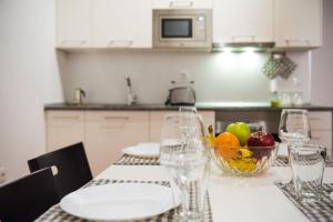 Dodatkowe udogodnienia obejmują ręczniki i pościel zapewnione na terenie całego apartamentu oraz ogrzewanie i szafę garderobianą z przylegającym pokojem do przebierania dla wygody gości. Do dyspozycji jest także pralka oraz możliwość korzystania z łóżeczka dziecięcego. Zasięg WiFi obejmuje cały obiekt, wyższe piętra są dostępne wyłącznie schodami.