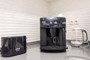 W pełni wyposażony aneks kuchenny obejmuje płytę grzewczą wraz z lodówką, zmywarką i piekarnikiem, udostępniono także mikrofalówkę oraz urządzenia do przygotowywania kawy i herbaty. Dodatkowo goście mogą korzystać ze znajdującej się wewnątrz lokalu pralki oraz gniazdek przy łóżkach służących do bezpiecznego ładowania urządzeń elektronicznych. W apartamencie zamontowano zabezpieczenia przeciwpożarowe (gaśnice).