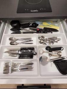 Kawalerka dysponuje dwoma łóżkami oraz klimatyzacją i ogrzewaniem zapewniającymi komfort przez cały rok. W pełni wyposażony aneks kuchenny obejmuje piekarnik, zmywarkę, lodówkę, mikrofalówkę, ekspres do kawy, czajnik elektryczny i toster oraz zestaw do parzenia herbaty i kawy wraz z naczyniami kuchennymi i stołem jadalnym z wysokim krzesełkiem dla dziecka na życzenie. W pokoju znajduje się także rozkładana sofa z częścią wypoczynkową oraz szafa, dostępny jest prasowalnica do spodni oraz suszarka na ubrania wraz z żelazkiem i deską do prasowania, ściany są dźwiękoszczelne gwarantując spokojny wypoczynek.
