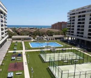 Apartamento playa Veramar patacona è un appartamento recentemente ristrutturato a Valencia, dotato di piscina a sfioro, WiFi gratuito, strutture per sport acquatici e vasca all'aperto. Situato a soli 400 metri dalla spiaggia di Patacona e a 3,9 km dal Porto di Valencia, questa proprietà fronte mare offre una camera con vista sul giardino e sulla piscina oltre all’accesso a un balcone.