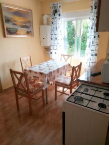 The spacious accommodation features two bedrooms, a living room with a sofa bed, and one bathroom equipped with a bathtub, shower, complimentary toiletries including shampoo, conditioner and body soap as well as a hairdryer. The full kitchen contains an oven, microwave, stovetop, refrigerator, electric kettle and tea and coffee making facilities alongside kitchenware and a dining table. Additional in-room amenities include heating, ironing facilities with iron and ironing board, work desk, dressing room wardrobe or closet space clothes drying rack seating area rollaway bed linens towels flat-screen TV with streaming services cable channels radio bedside sockets washing machine sofa hardwood flooring.