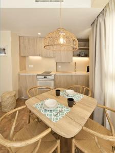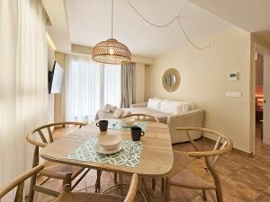 Klimatyzowany apartament obejmuje osobną sypialnię oraz salon z dwoma miejscami do spania, w tym rozkładaną sofą zapewniającą dodatkowe miejsce noclegowe. W pełni wyposażony aneks kuchenny zawiera piekarnik, płytę grzewczą, lodówkę, zmywarkę, mikrofalówkę, ekspres do kawy, toster i czajnik elektryczny wraz ze wszystkimi niezbędnymi naczyniami kuchennymi oraz zestawem do przygotowywania herbaty i kawy. Do dyspozycji gości jest także stół jadalny.