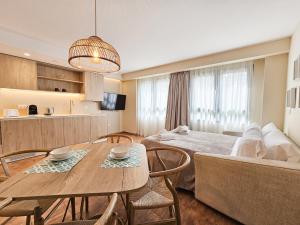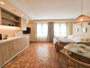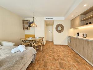 Este estudio climatizado dispone de una cama junto con zona de estar y armario para almacenamiento. La cocina americana está totalmente equipada e incluye horno, placa vitrocerámica, frigorífico, lavavajillas, microondas, cafetera eléctrica, hervidor eléctrico, tostadora y un completo juego de utensilios además del comedor. Entre las comodidades adicionales hay lavadora, sofá cama y cuna para bebés disponible bajo petición, también dispone plancha y tabla para planchar.
