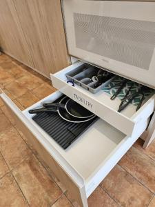 В кондиционируемой студии есть одна кровать, диван-кровать и зона отдыха с гардеробом для хранения вещей. Кухня открытого типа оснащена плитой, холодильником, посудомоечной машиной, духовкой, микроволновой печью, тостером, кофемашиной и электрическим чайником, предоставлены полный комплект кухонной утвари и обеденный стол. В частной ванной комнате установлены душевое ограждение, фен и необходимые туалетные принадлежности — шампунь и гель для тела.