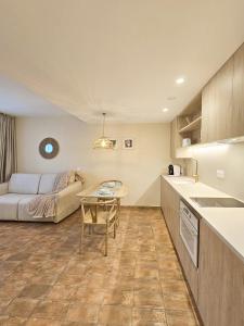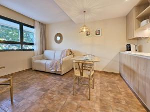 El apartamento cuenta con un dormitorio independiente con dos camas y una sala de estar equipada con sofá cama y zona para sentarse. La cocina americana totalmente equipada dispone horno, placa vitrocerámica, lavavajillas, microondas, frigorífico, cafetera, tostadora y hervidor eléctrico junto con todos los utensilios necesarios y una mesa comedor para preparar las comidas cómodamente.