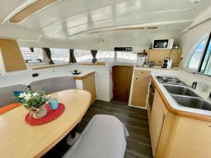 Le bateau comprend deux chambres séparées, trois lits au total, deux salles de bains et un coin cuisine entièrement équipé avec installations pour thé et café. Serviettes et linge de lit sont fournis pour le confort des clients.