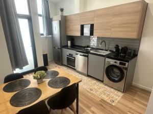Jedes Apartment verfügt über eine voll ausgestattete Küche mit Backofen, Kochfeld, Kühlschrank, Geschirrspüler, Mikrowelle, Toaster, Kaffeemaschine und elektrischem Wasserkocher sowie Küchenutensilien und Tee- bzw. Kaffeebereitungsmöglichkeiten neben einem Esstisch. Die Wohnbereiche sind mit Flachbildfernsehern ausgestattet und bieten Sofas oder Sitzgelegenheiten zur Entspannung sowie Waschmaschinen für längere Aufenthalte.