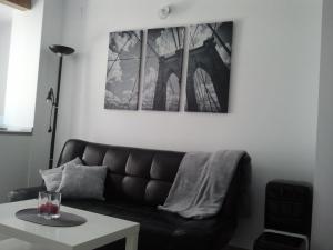 Accommodation includes one bedroom alongside a living room furnished with a sofa bed. The fully equipped kitchen features an oven, toaster, refrigerator, microwave, coffee machine and dining table for convenient meal preparation. The bathroom contains a shower with complimentary toiletries including shampoo and body soap as well as a hairdryer.