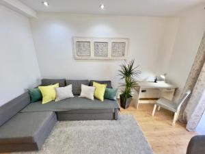 The fully equipped kitchen includes an oven stove top alongside refrigerator microwave toaster electric kettle tea-and-coffee making facilities complemented by kitchenware to accommodate cooking needs seamlessly. Additional conveniences include flat-screen TV with bedside sockets for charging devices along comprehensive internet services available via WiFi throughout all areas inside this non-smoking property which also provides street parking but upper floors are accessible by stairs only.