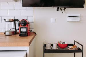 Внутри апартаментов гости найдут отдельную спальню и гостиную с телевизором с плоским экраном. Полностью оборудованная кухня оснащена современной техникой: плитой, микроволновой печью, холодильником а также принадлежностями для чая и кофе для комфортного пребывания.