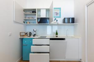 Les hôtes peuvent profiter d’un coin cuisine entièrement équipé comprenant batterie de cuisine, plaques de cuisson, réfrigérateur, lave-vaisselle, micro-ondes, grille-pain, cafetière électrique ainsi qu’une bouilloire avec matériel pour le thé. Une table à manger est disponible avec chaise haute enfant sur demande. La salle de bains privative offre des articles gratuits tels que shampoing et savon corporel ainsi qu’une douche italienne sans marche ni baignoire accompagnée d’un sèche-cheveux.