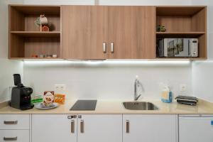 Le logement comprend une chambre avec deux lits ainsi qu’un salon climatisé doté d’un sol carrelé et d’une télévision écran plat pour votre divertissement. Le coin cuisine intègre une plaque chauffante, un réfrigérateur combiné four-micro-ondes ainsi que des équipements pour préparer thé et café accompagnés du nécessaire pour cuisiner confortablement.