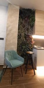Ubytování sestává z jedné ložnice s dvěma lůžky a obývacího pokoje s posezením včetně rozkládací pohovky a sedačky, což poskytuje dostatek prostoru pro odpočinek nebo posezení s hosty. Plně vybavená kuchyň obsahuje základní spotřebiče jako troubu, mikrovlnnou troubu, lednici, toustovač, kávovar, rychlovarnou konvici i kompletní kuchyňské náčiní pro pohodlnou přípravu jídel na místě.