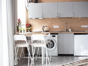 Внутри апартаментов гости найдут спальню с одной кроватью и звукоизолированными стенами для дополнительного комфорта. Полностью оборудованная мини-кухня включает плиту, холодильник, микроволновую печь, кофемашину и принадлежности для приготовления чая и кофе, имеется обеденный стол со стульями и электрический чайник. Для удобства гостей предусмотрена стиральная машина.