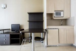I monolocali sono luminosi e climatizzati, con connessione Wi-Fi gratuita in tutta la struttura. Ogni unità dispone di un’area studio attrezzata con scrivania, due letti singoli o divani letto per bambini, riscaldamento e biancheria da letto e asciugamani cambiati ogni tre giorni, inoltre sono progettate per essere accessibili anche agli utenti in sedia a rotelle. Gli angoli cottura sono completamente forniti di forno microonde, frigorifero, forno tradizionale, piano cottura, utensili da cucina e set per tè e caffè. I bagni privati includono docce o vasche da bagno con prodotti cortesia come sapone corpo e shampoo.