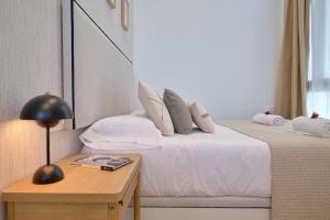 В апартаменте одна спальня с двумя кроватями и полом из плитки или мрамора. Кухня оснащена всем необходимым: плитой, микроволновой печью, холодильником, тостером, кофемашиной, электрическим чайником, посудой для приготовления чая и кофе а также обеденным столом. Гостиная зона включает раскладной диван с местами для сидения и телевизор с плоским экраном. Дополнительные удобства — отопление, гладильная доска с утюгом, сушилка для одежды, стиральная машина, по запросу предоставляется детская кроватка, также включены полотенца и постельное бельё.