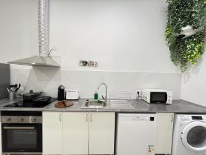 La cocina americana está completamente equipada con horno, placa vitrocerámica, frigorífico, lavavajillas, microondas, tostadora, cafetera eléctrica hervidor eléctrico y utensilios junto a una mesa comedor para disfrutar las comidas en casa. Entre otras comodidades hay plancha y tabla para planchar disponibles así como lavadora y secadora junto con tendedero para ropa. Se ofrece servicio diario de limpieza para mantener el confort durante su estancia además opciones accesibles para aparcamiento.