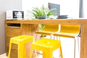 La cuisine est équipée d’un four, plaque chauffante, micro-ondes, grille-pain, réfrigérateur, cafetière électrique bouilloire et ustensiles nécessaires pour cuisiner en autonomie. L’appartement propose un accès internet dans toutes les pièces ainsi qu’un ascenseur desservant les étages supérieurs. Des transferts vers l’aéroport sont disponibles moyennant un supplément.