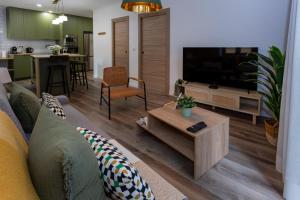 Апартамент включает одну спальню с двумя кроватями и гостиную. Гости могут пользоваться полностью оборудованной мини-кухней с плитой, холодильником, посудомоечной машиной, духовкой, микроволновой печью и кофемашиной, а также всей необходимой кухонной утварью для приготовления пищи. Ванная комната оснащена бесплатными туалетными принадлежностями, мылом для тела, феном и ванной либо душевой кабиной. Дополнительно предоставляются отопление, кондиционер, звукоизоляция для уединения, постельное белье и полотенца. Также доступны утюг с гладильной доской и пресс для брюк.